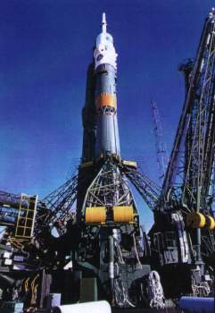 Vue du lanceur SOYOUZ lors de son transfert