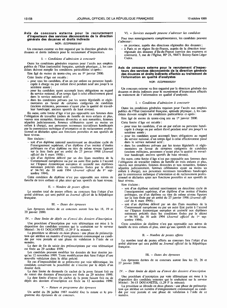 J.O. disponibles       Recherche dans J.O.       Lois,décrets       codes       AdmiNet